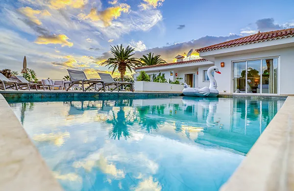 En la parte exterior podrán disfrutar de un relajante baño en el jacuzzi y darse un buen chapuzón en su impresionante piscina Balinesa climatizada. Disfrutaran de su extenso solárium con cómodas hamacas y dos grandes sofás donde disfrutar de una copa de vino.
